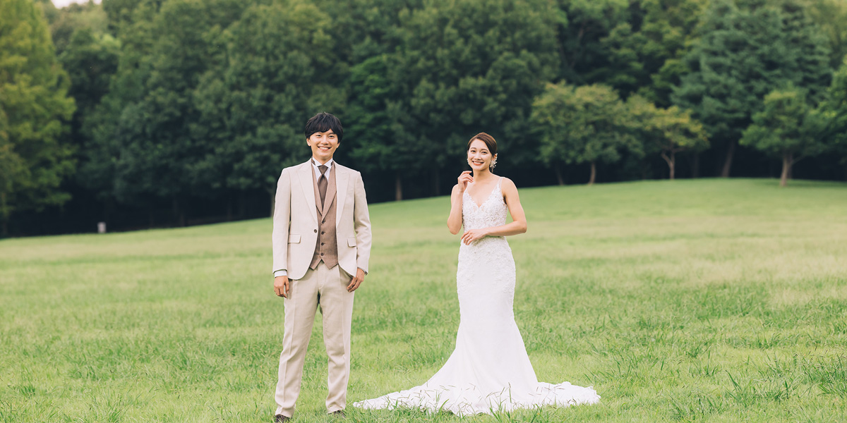 広大な緑豊かな風景が自然と調和した風景の中で100カット以上撮影します。開放的なロケーションで自然な表情を残せます。